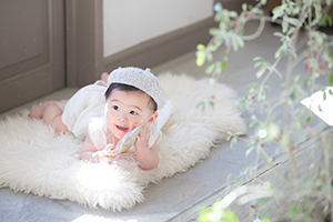 百日祝いやお宮参りの撮影のときと比べるとできることがとっても増えて、お写真もバリエーション豊かにいろいろな仕草や表情が残せます